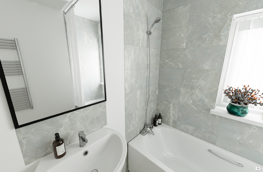 Family bathroom with thermostatic shower